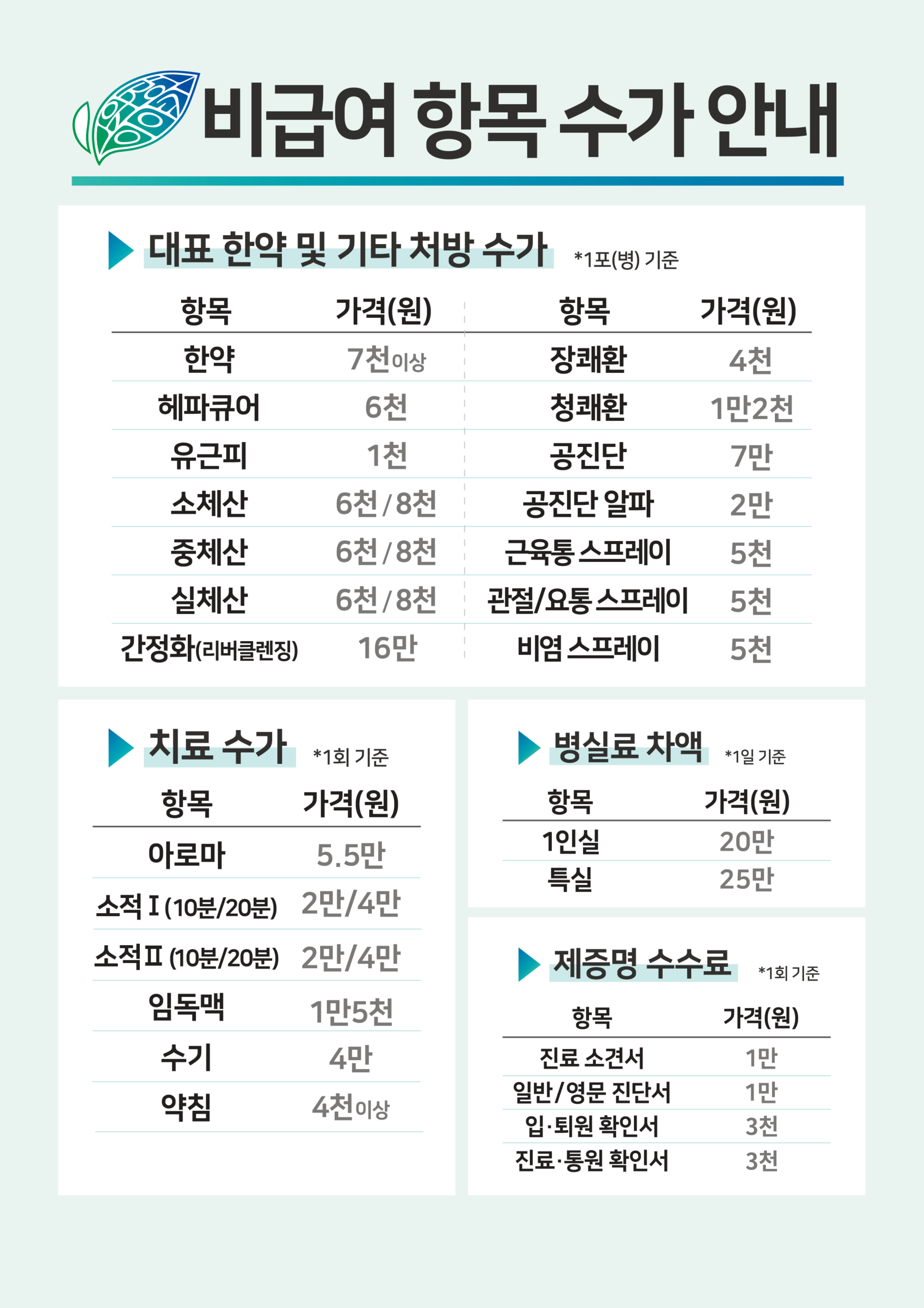 비급여 항목 수가 안내