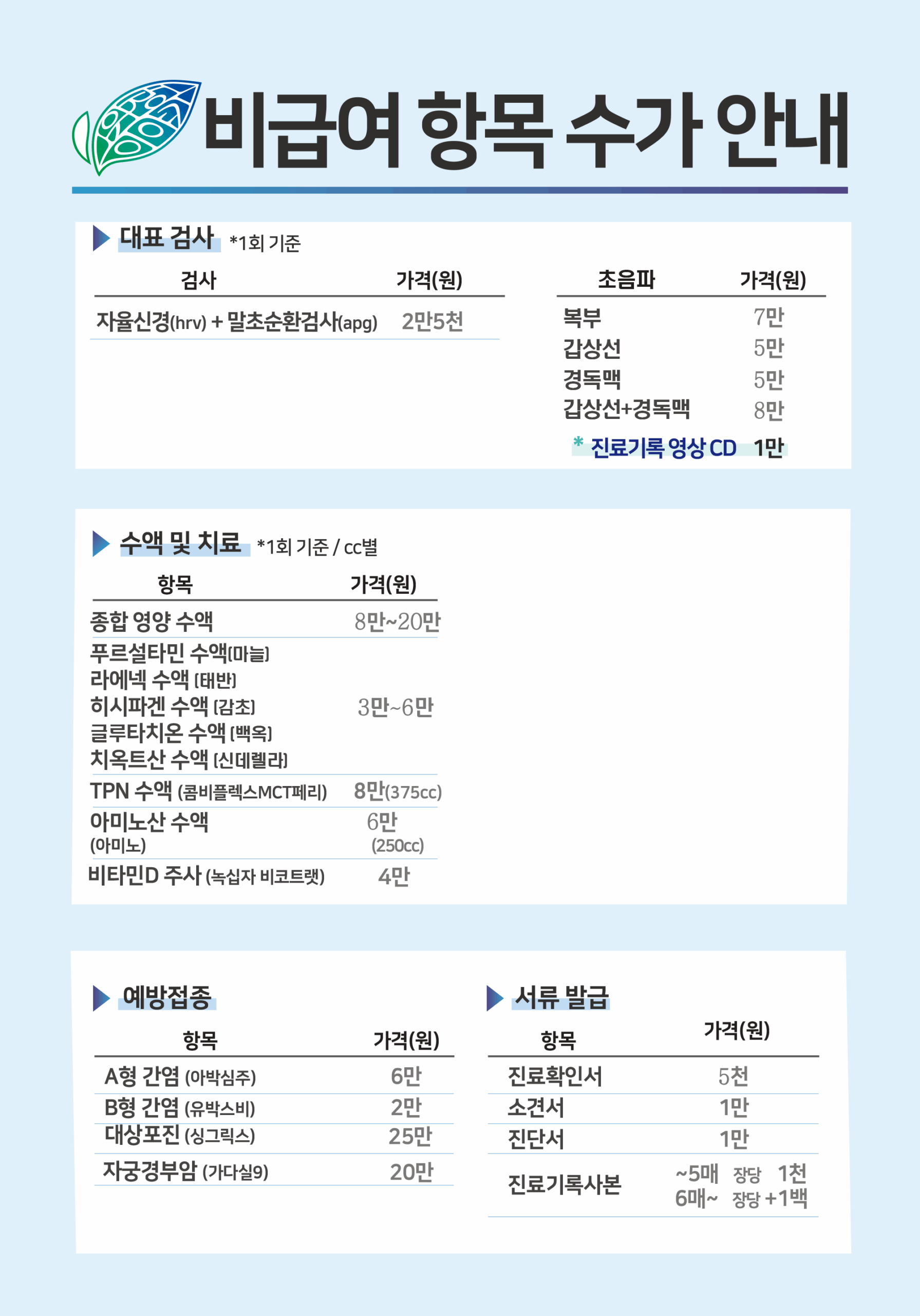 비급여 항목 수가 안내