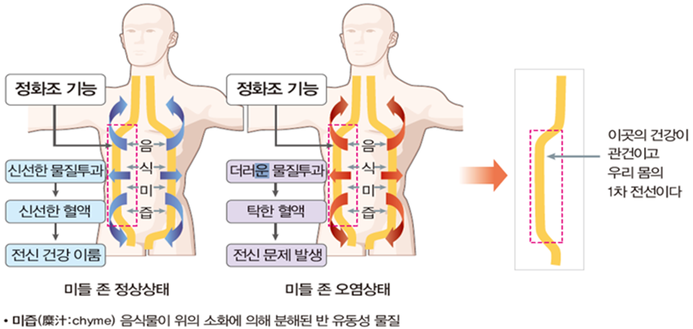 3~8mm 두께의 미들존은 음식의 소화, 흡수뿐 아니라 해독, 면역까지 조절하는 아주 중요한 부위입니다.
