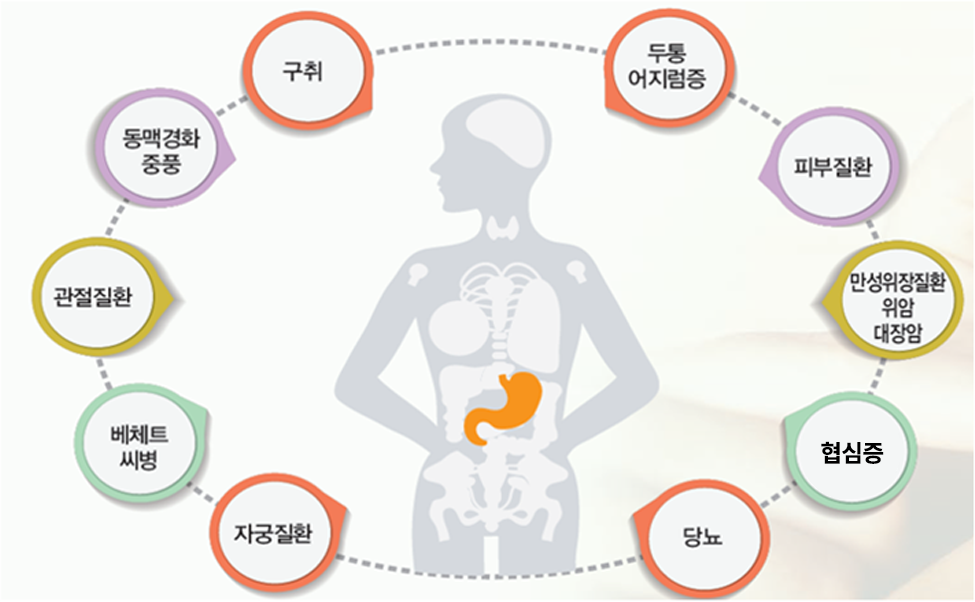 관절염 / 각종 피부질환 / 만성위장질환 / 편두통 /