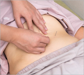 따뜻한 성질의 성분을 가진 아로마 오일을 복부에 도포한 후 마사지 하는 아로마 요법으로 굳어진 위와 장의 운동성을 활성화 시켜주는 치료법입니다.