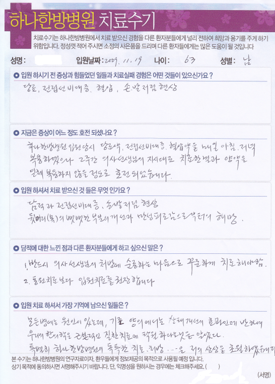 [당뇨, 전립선비대증, 손발저림 /63세] 남OO님 치료수기