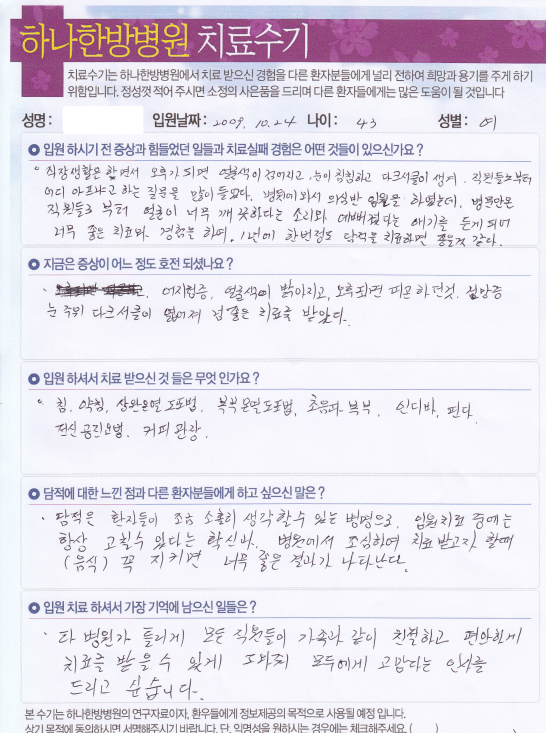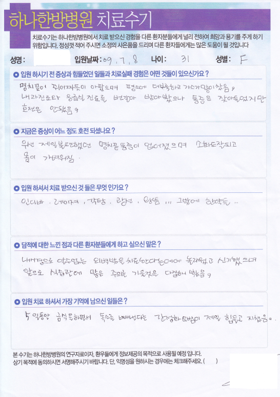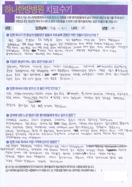 환자 치료 후기