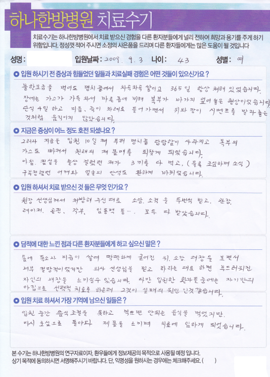 [명치끝답답, 체기, 딱딱한 배 /43세] 김OO님 치료수기