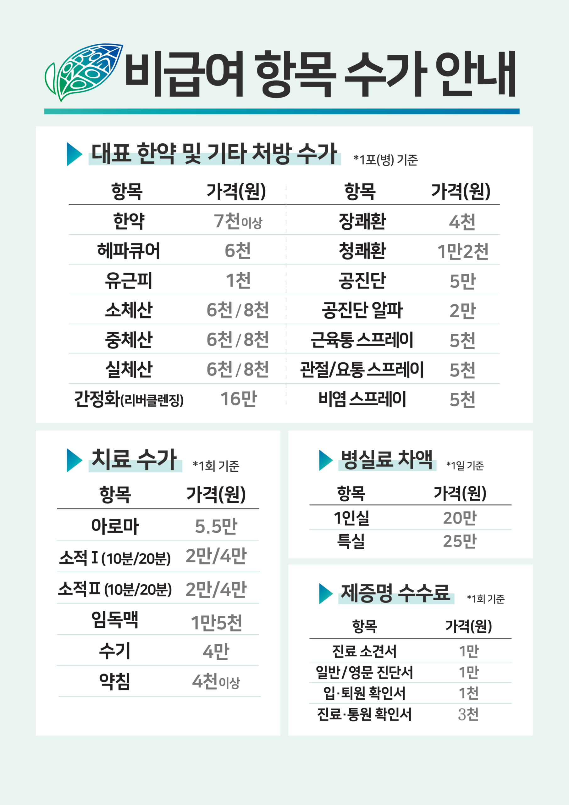 | 진료확인서 | 5,000 | 영문소견서 | 10,000 | |