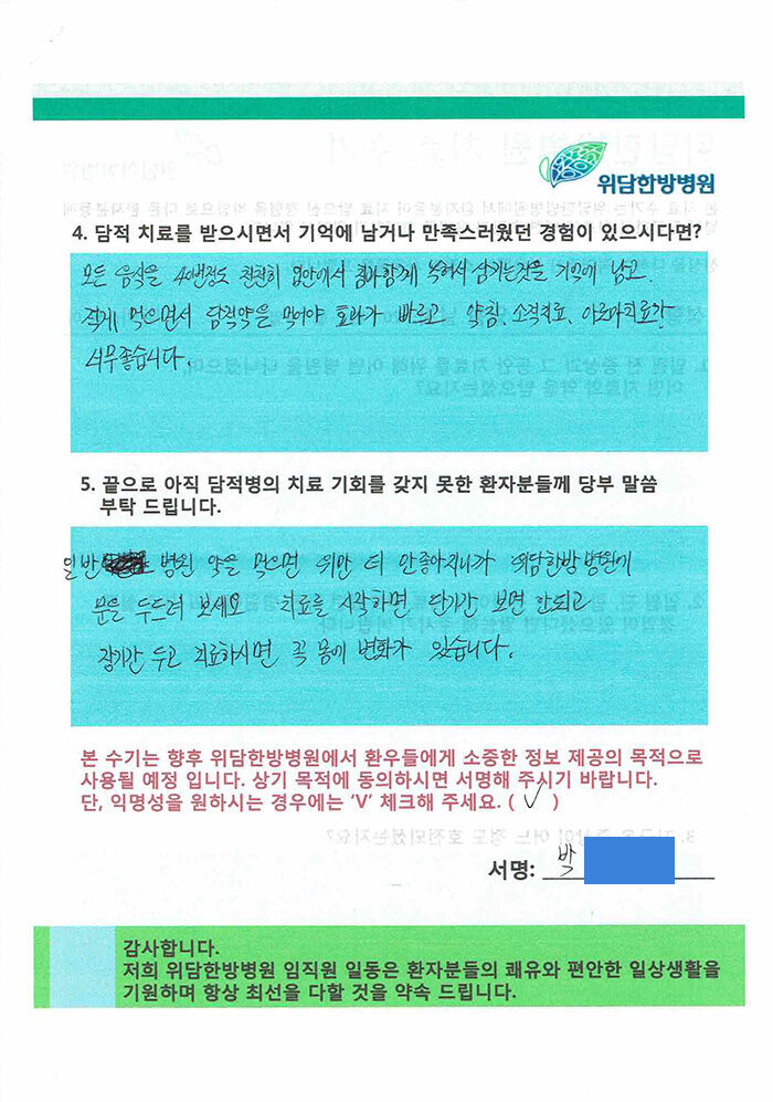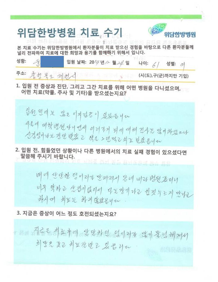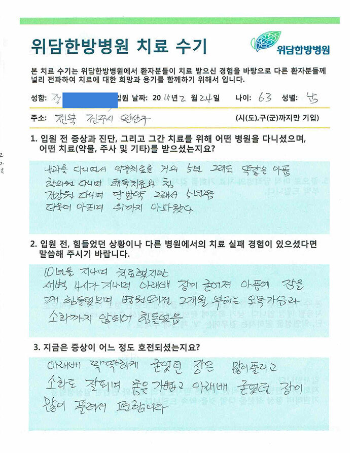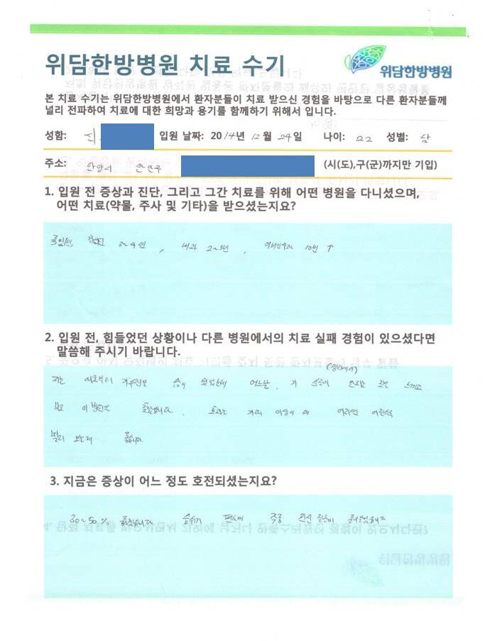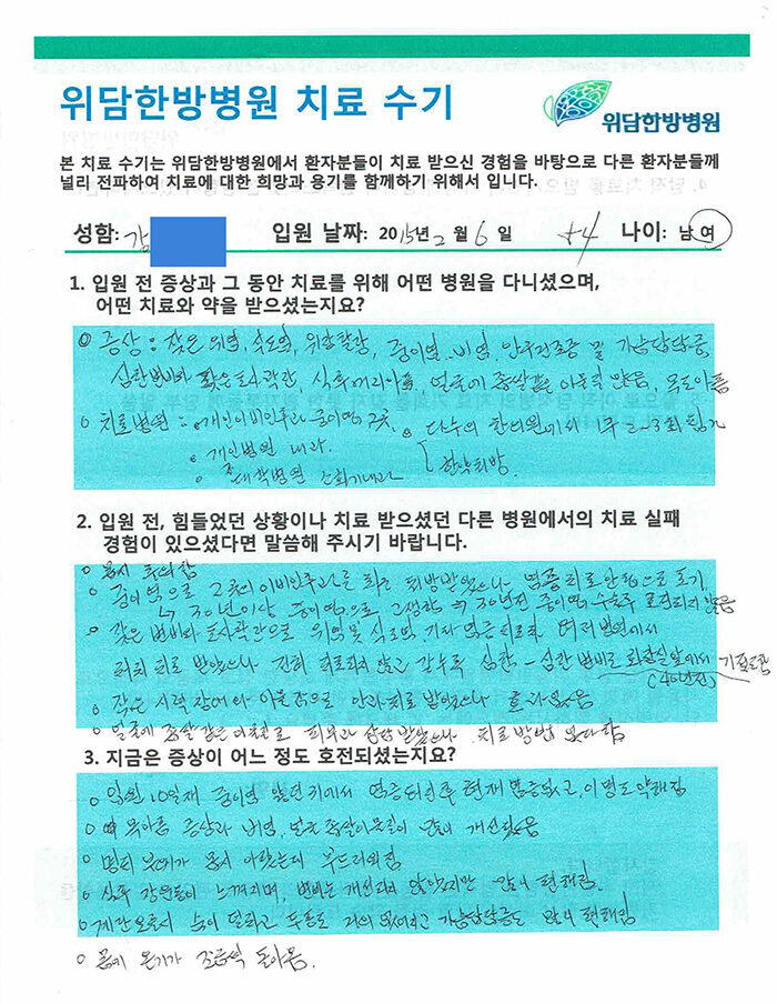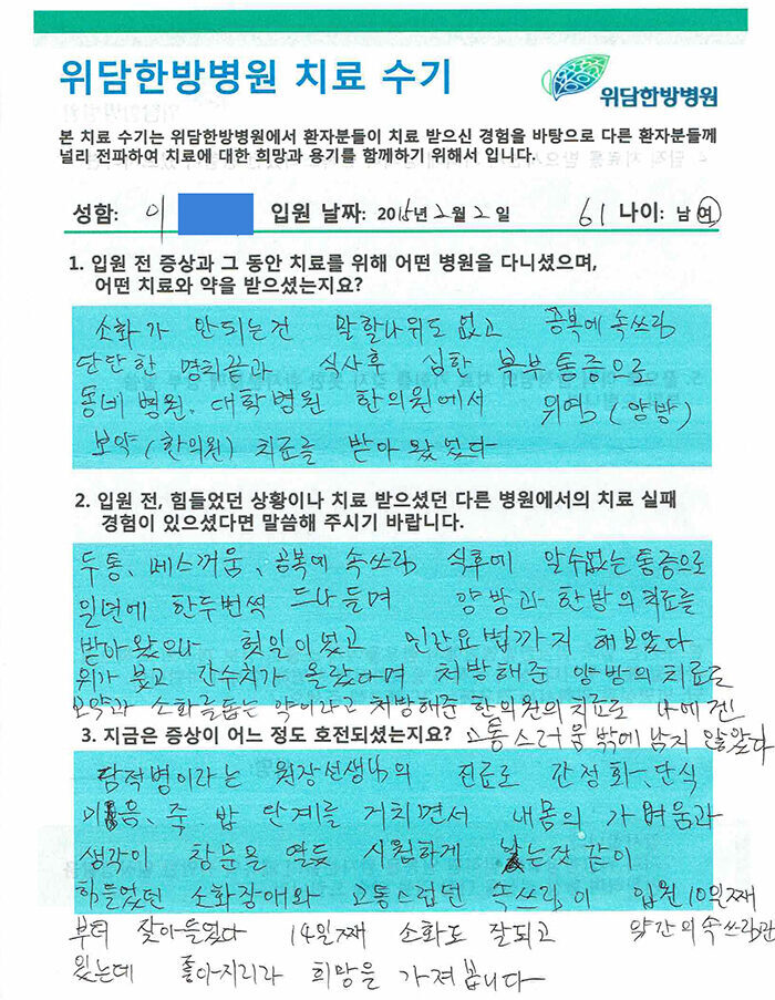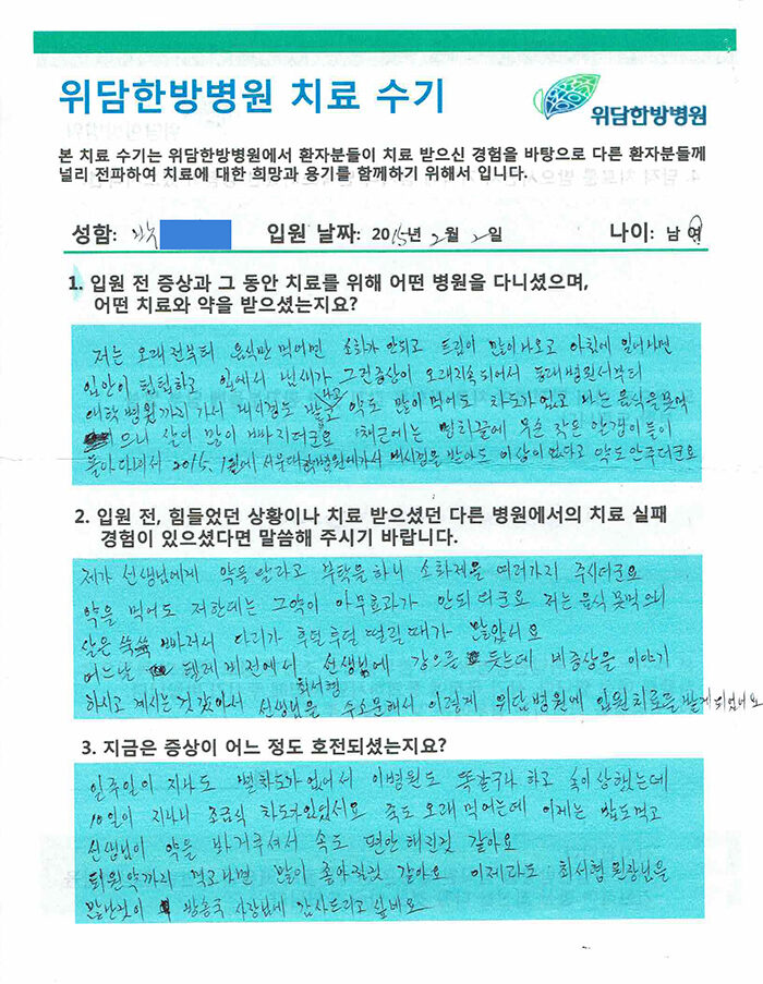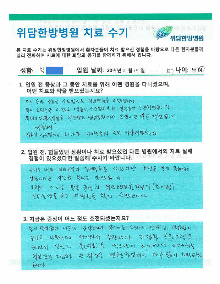 [위궤양, 역류성식도염, 두드러기 등] 박OO님 치료수기