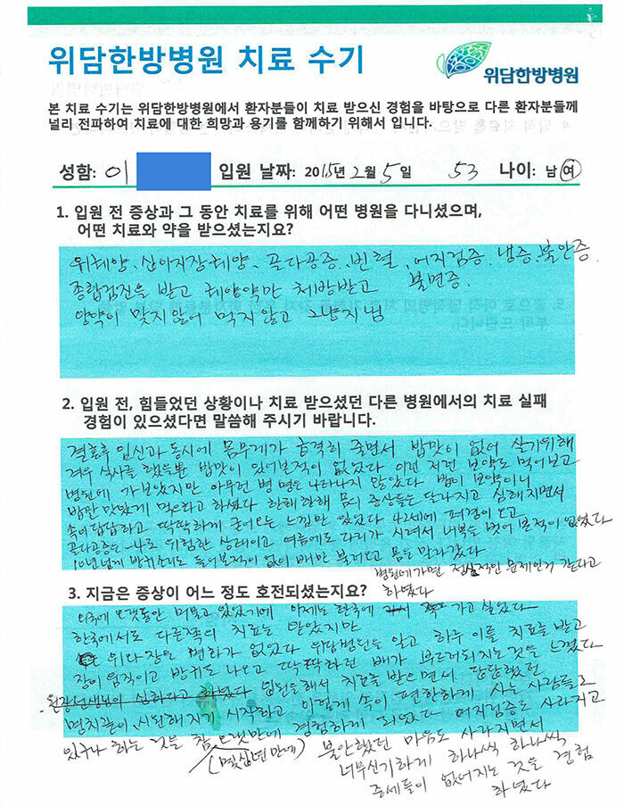 [위궤양, 십이지장궤양, 골다공증 등 /53세] 이OO님 치료수기