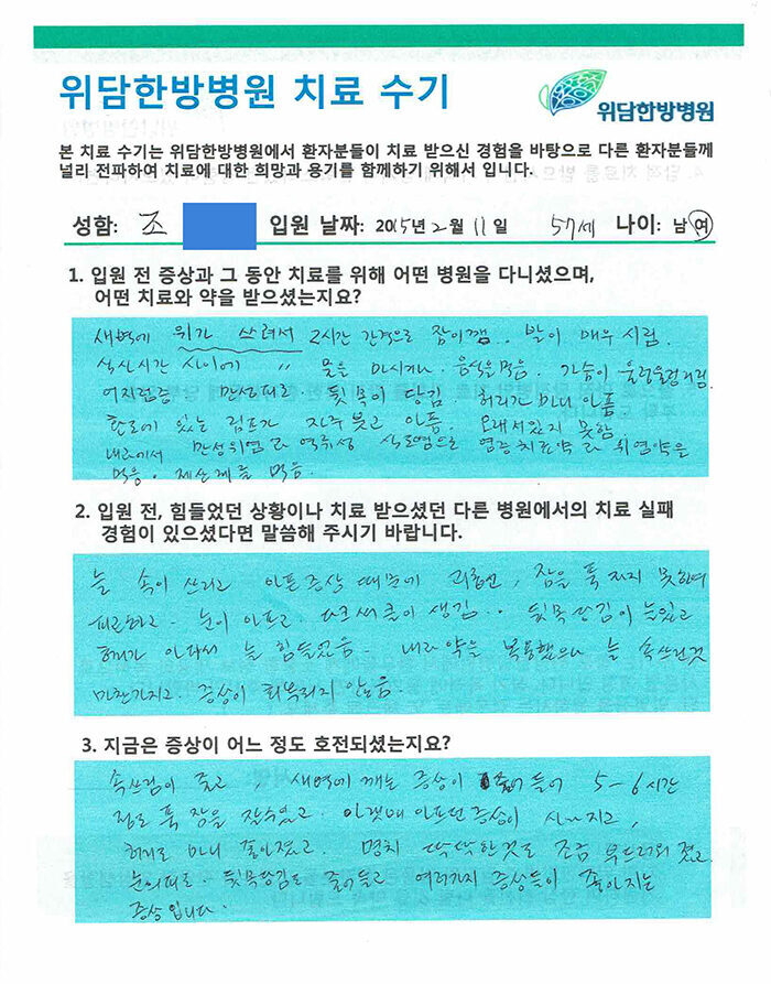 [위염, 식도염, 탈장 등 /54세] 강OO님 치료수기