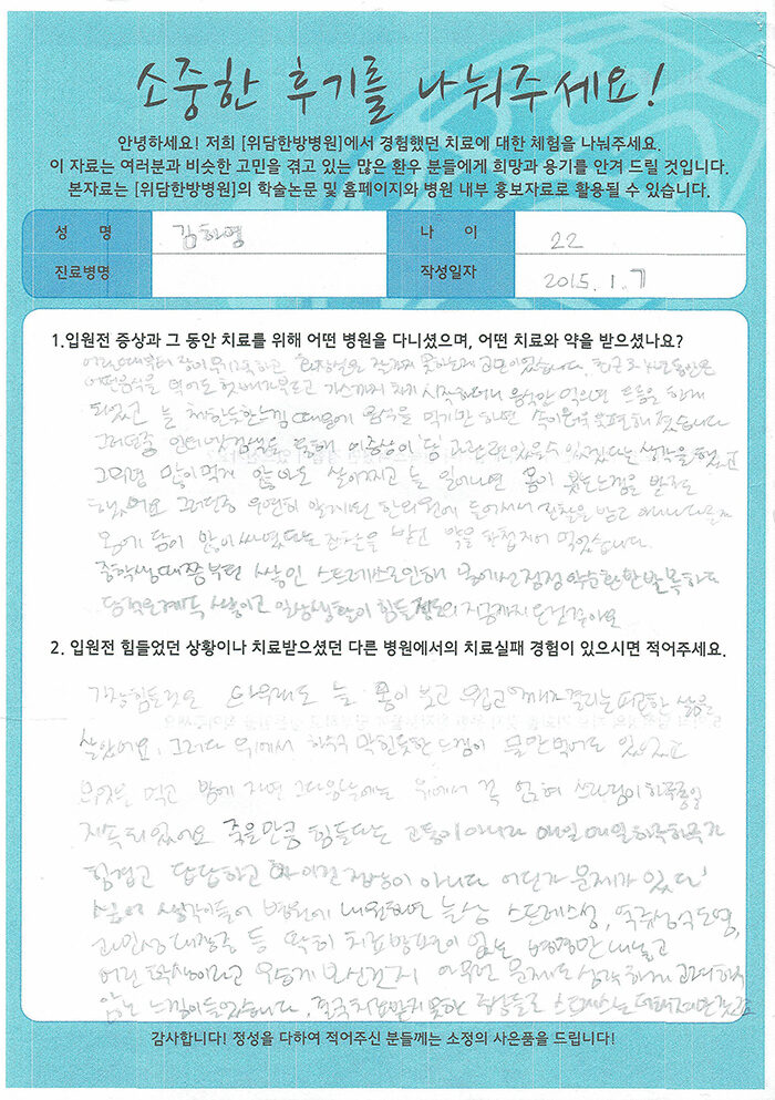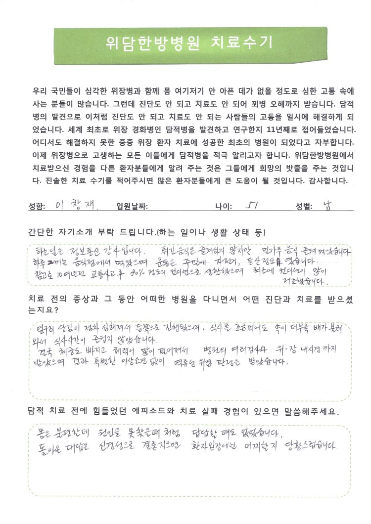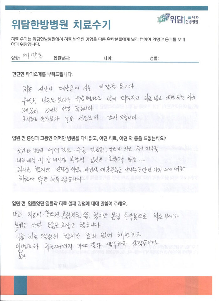 [만성위장장애, 우울증, 신경쇠약/54세] 김OO님 치료 수기