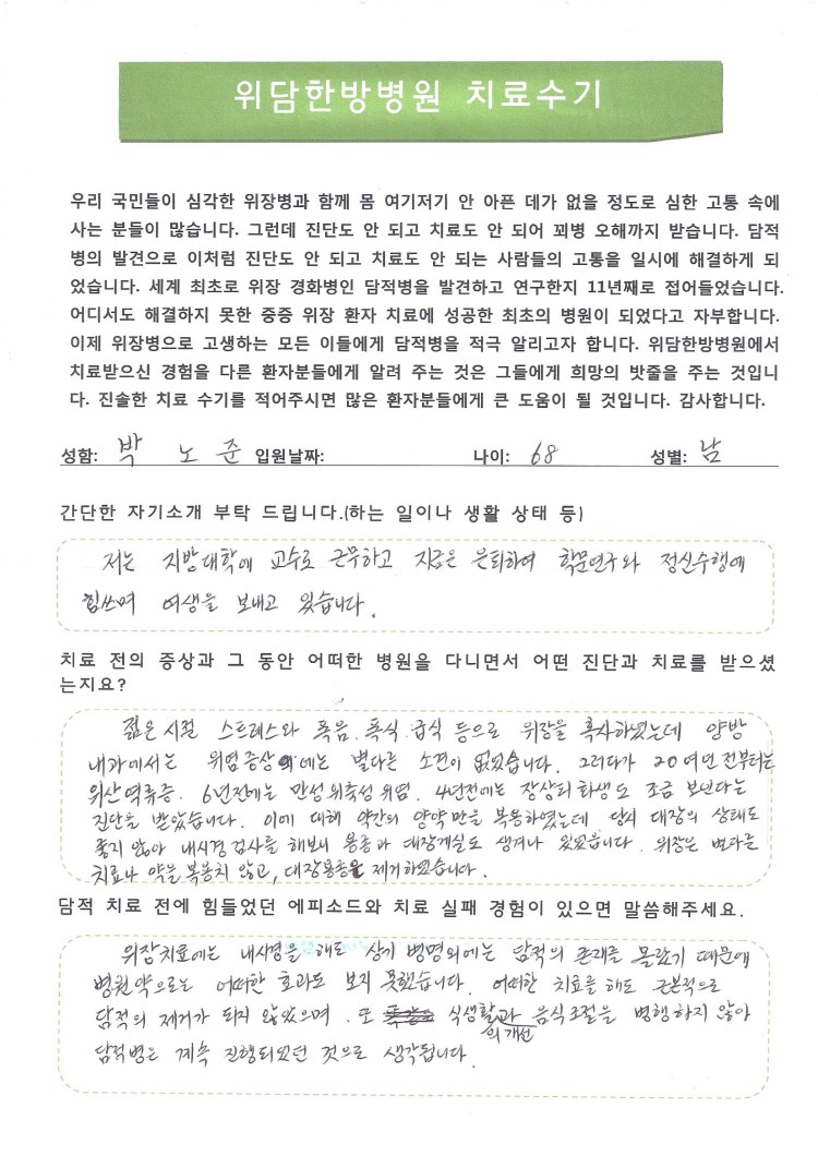 [위산역류증, 위무력, 복무팽만증 /68세]박OO님 치료수기