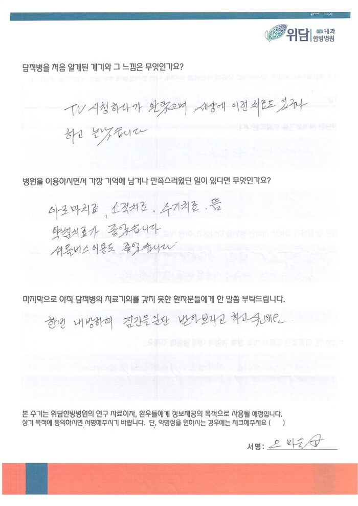[옆구리당김, 더부룩함 /51세]이OO님치료수기