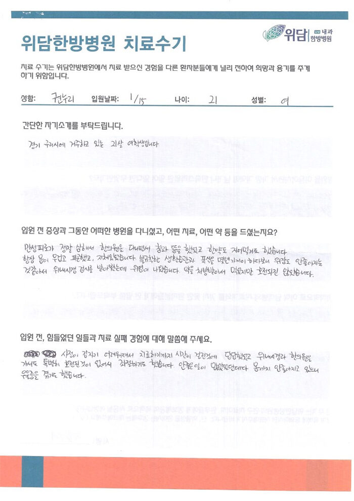 [만성피로, 잦은 폭식 /21세]권OO님 치료수기