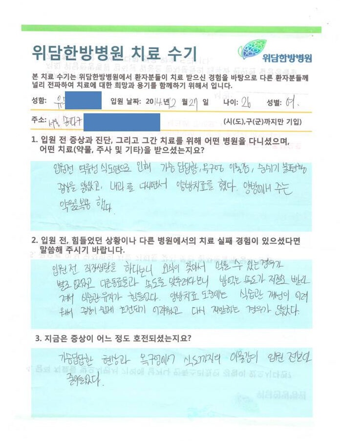[역류성식도염, 가슴답답함, 급식/26세] 유OO님 치료수기