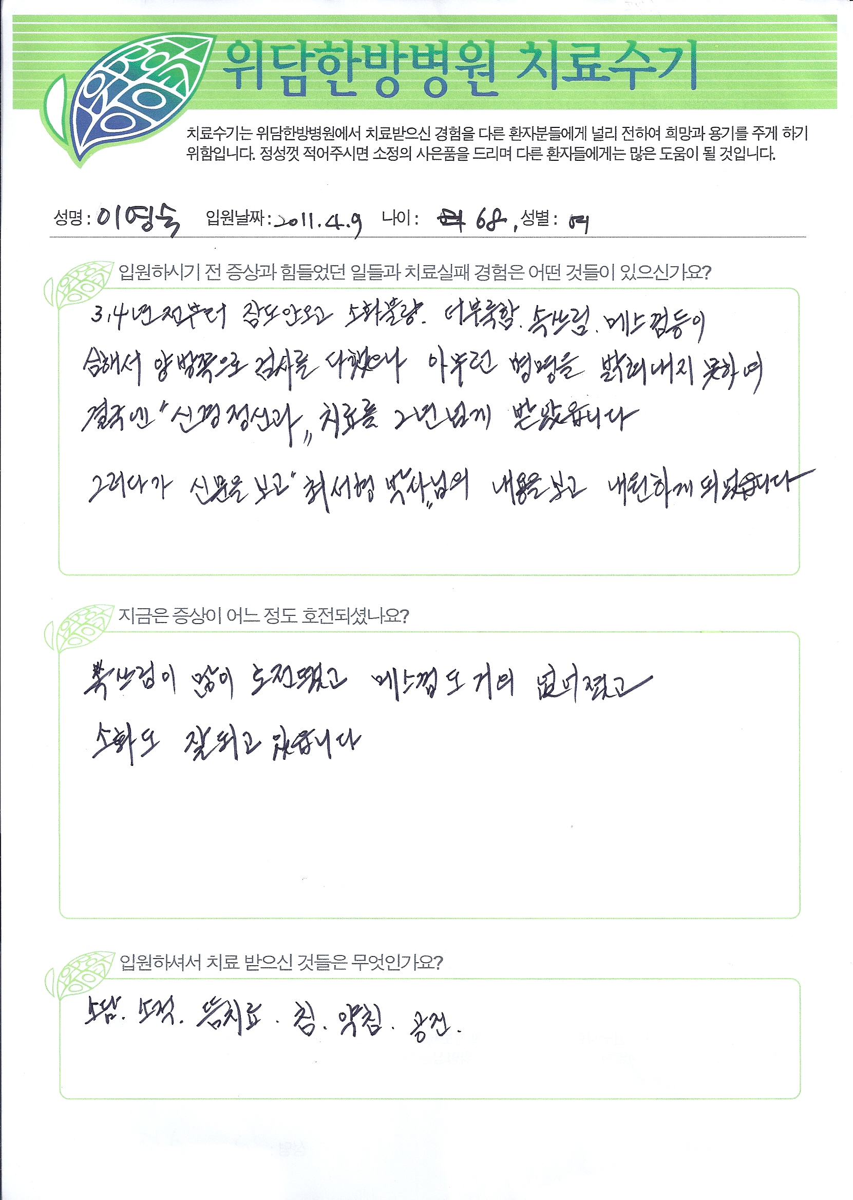 이영숙님의 치료수기(2)