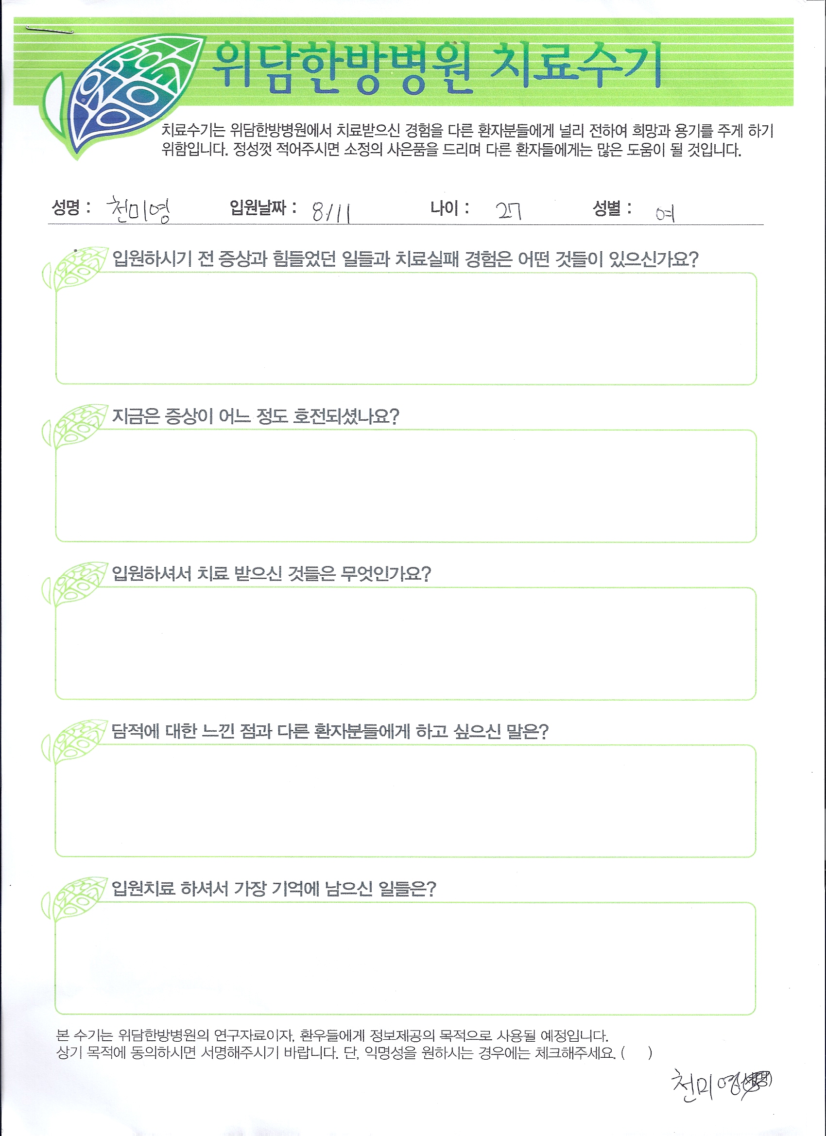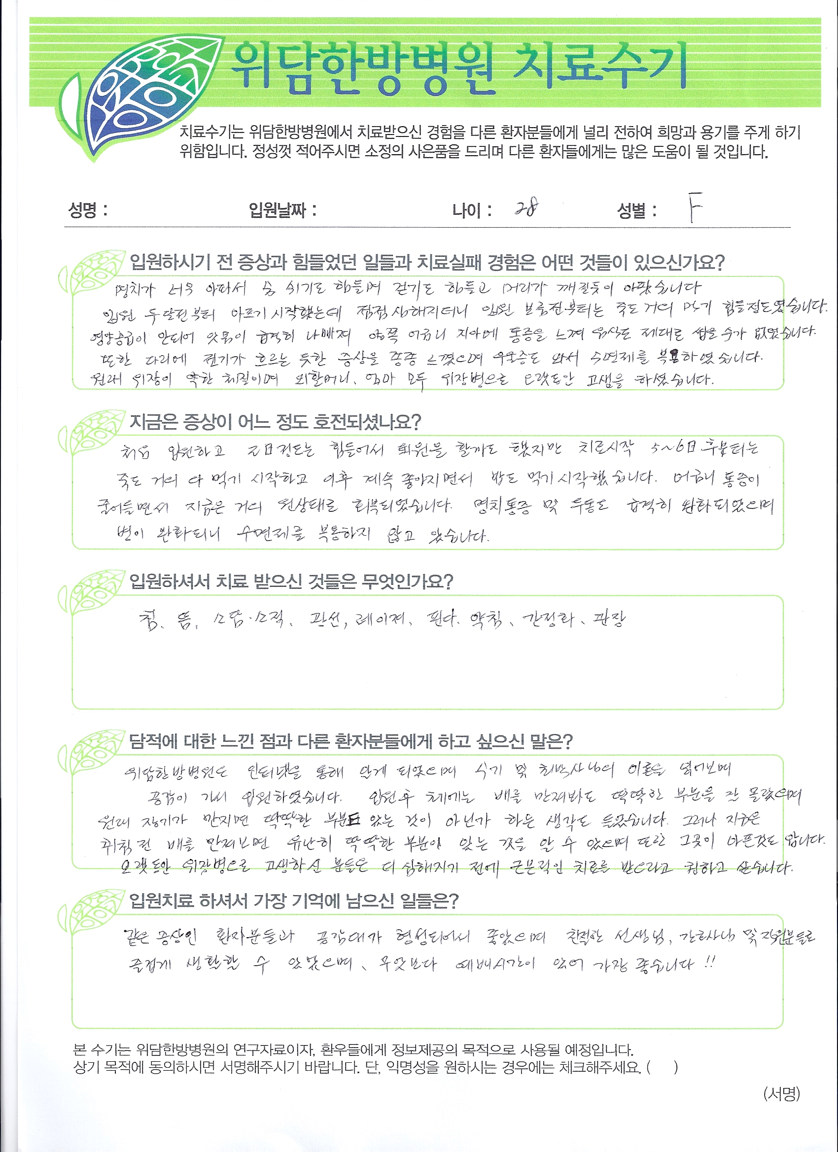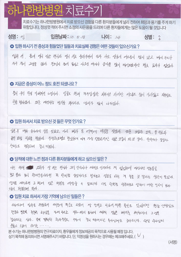 [속쓰림, 소화불량, 체기, 불면증, 두통 /24세] 김OO님 치료수기