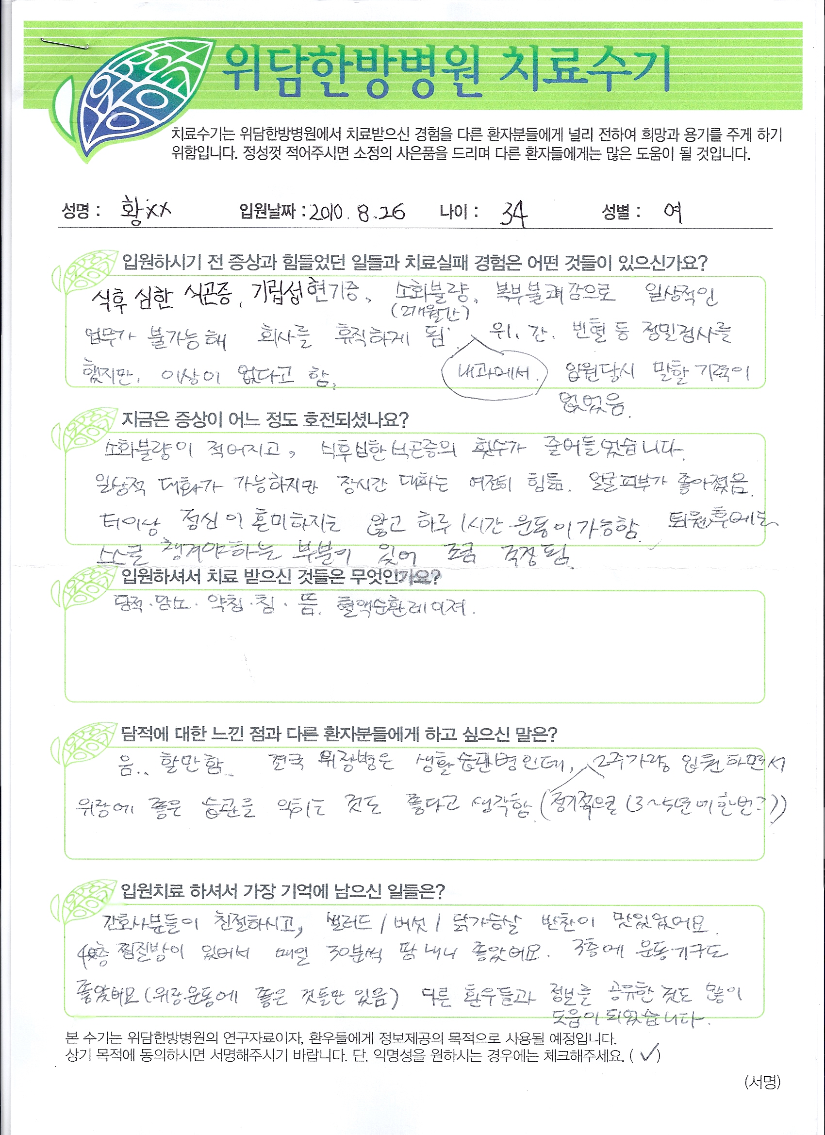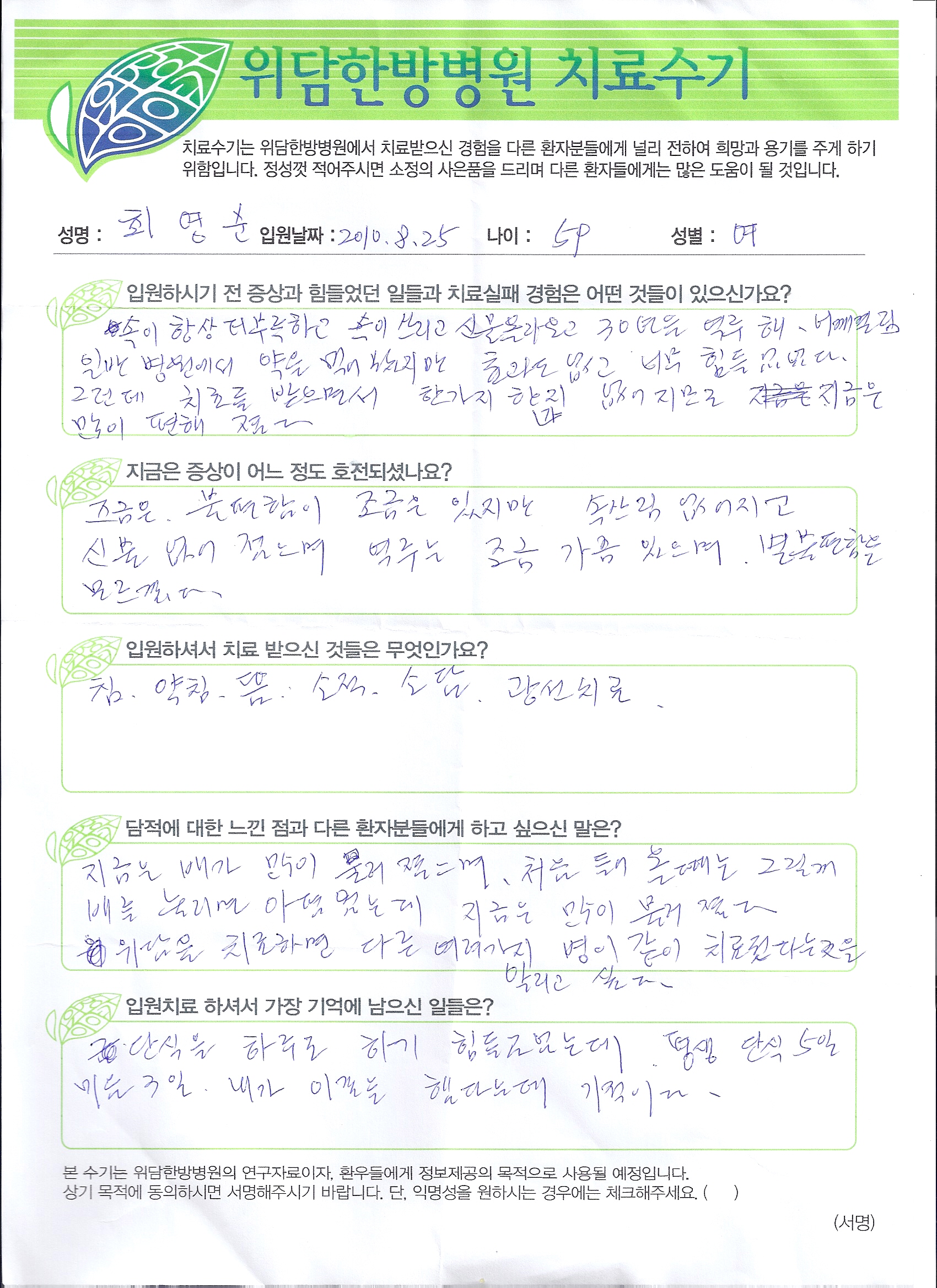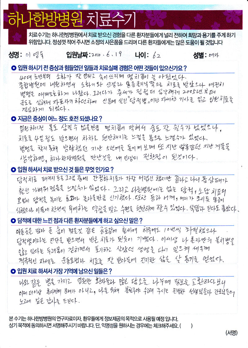 [소화불량, 변비 /55세] 김OO님 치료수기