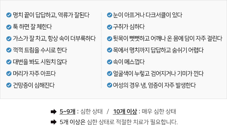 다음과 같은 증상이 있다면 담적병일 수 있습니다.