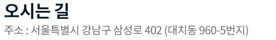 주소 : 서울특별시 강남구 삼성로 402 (대치동 960-5)