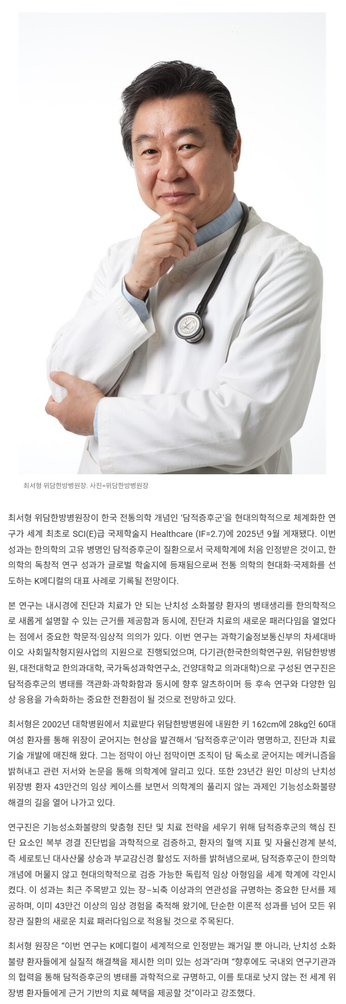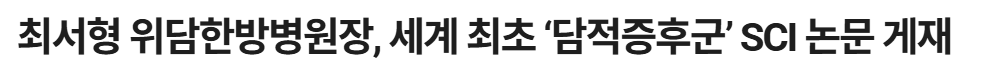 뉴스 바로가기 : 최서형 위담한방병원장, 세계 최초 ‘담적증후군’ SCI 논문 게재 < 사회 < 시사 < 기사본문 - 파이낸셜투데이