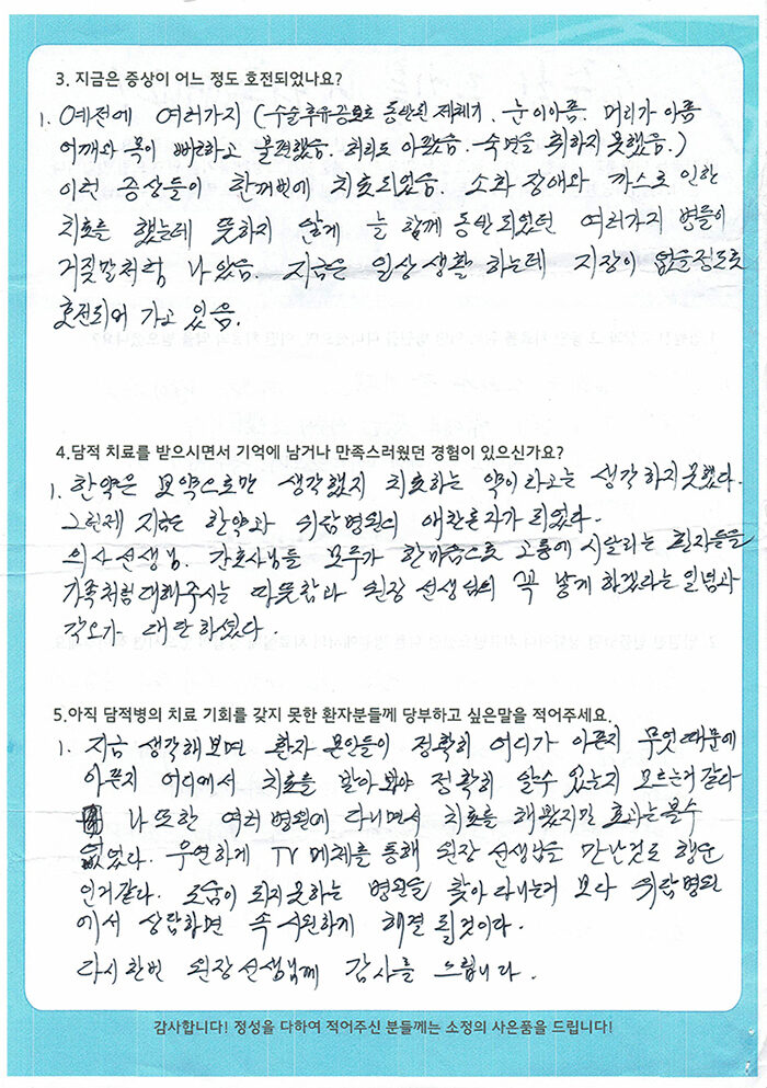 환자 치료후기