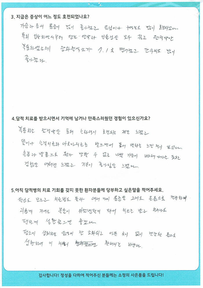 [가슴·등 통증, 당뇨병, 건망증 등] 신영숙님 치료수기
