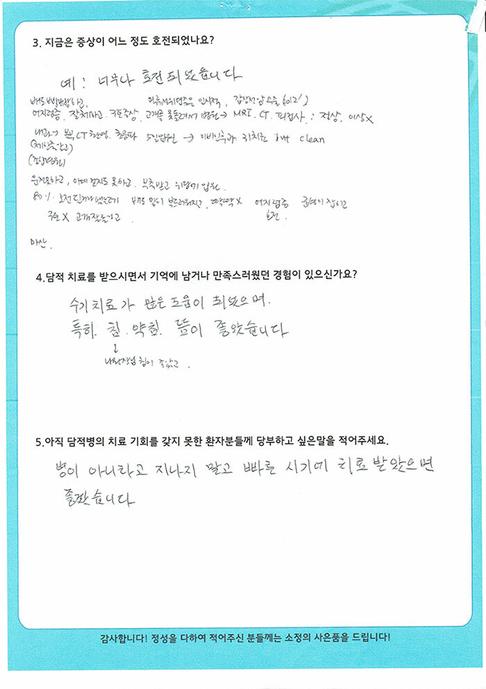환자 치료후기