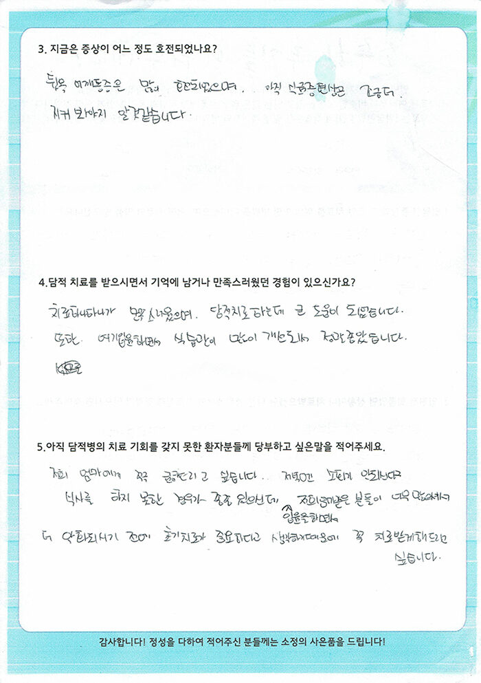 [소화불량, 어깨·등·명치 통증 등] 정은숙님 치료수기