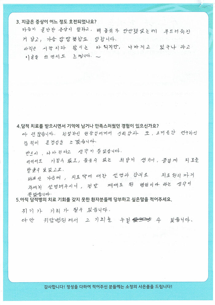 [부정맥, 불안증, 가슴답답 등] 박선옥님 치료수기
