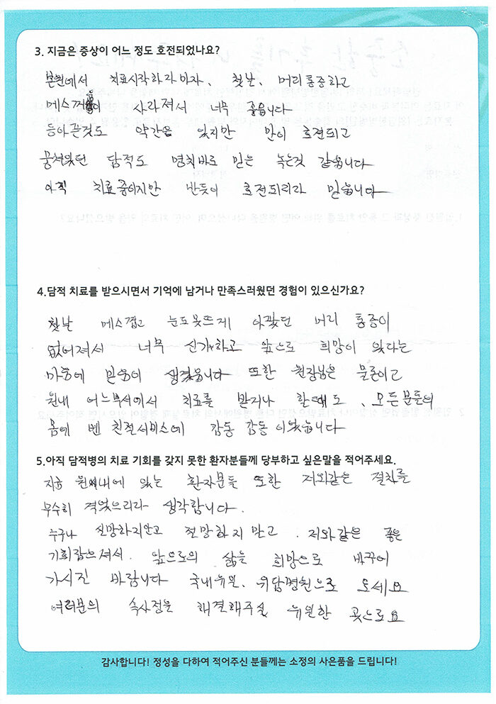 환자 치료후기