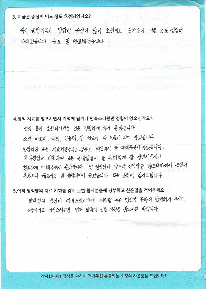 환자 치료후기