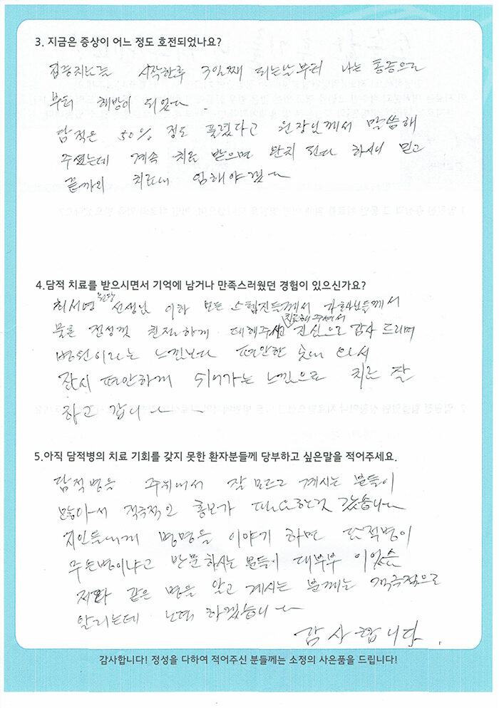 [관절통, 두통, 협심증 등] 김영남 님 치료수기
