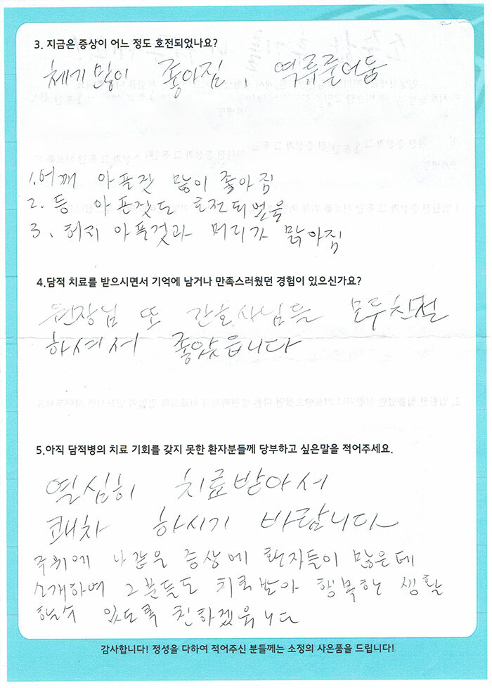 환자 치료후기