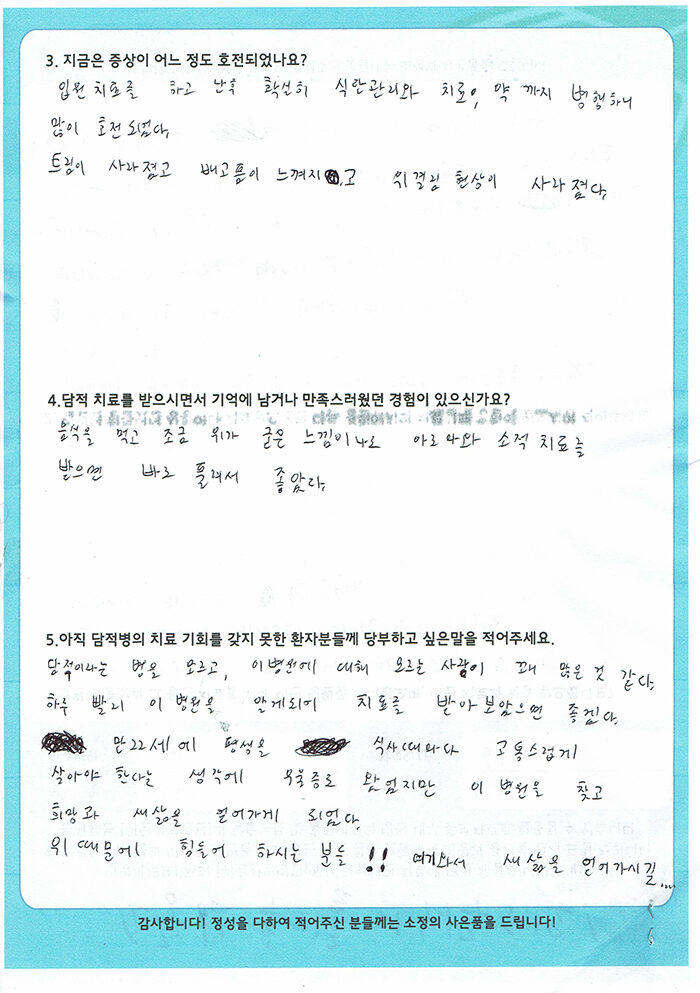 환자분들의 이야기 입니다.