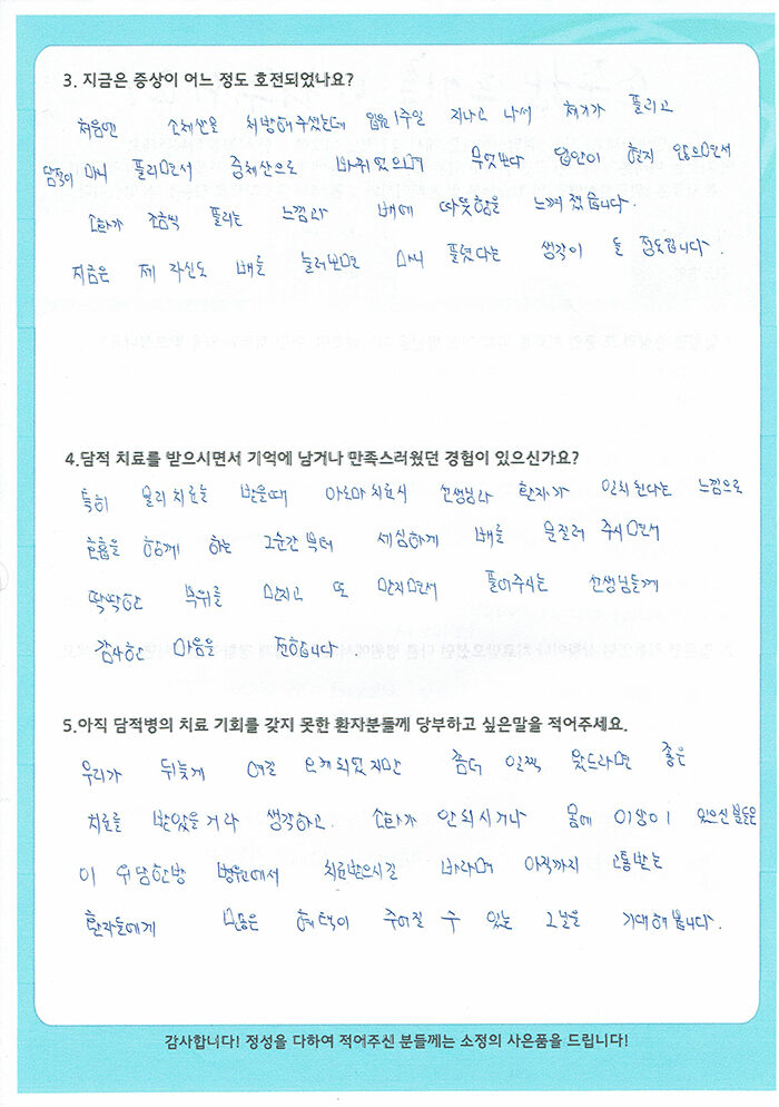 [잦은 체기, 명치 끝 딱딱, 호흡곤란 등] 강경혜 님 치료수기
