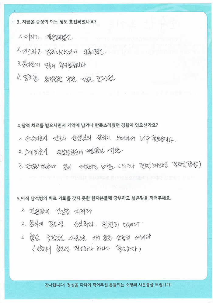 [두통, 등 통증, 명치 끝 답답 등] 김정화 님 치료수기