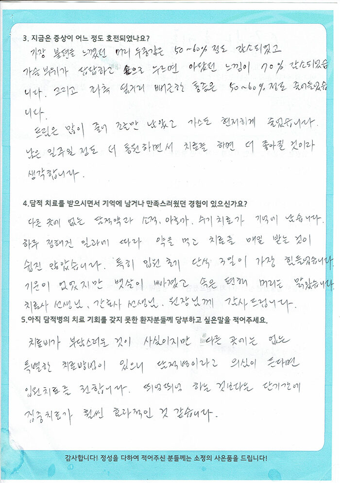 [만성 두통, 옆구리 통증, 가슴 답답 등] 한승철 님 치료수기