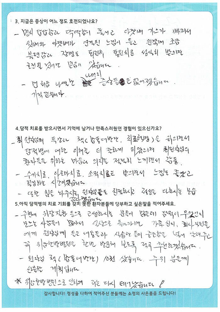 환자 치료 후기