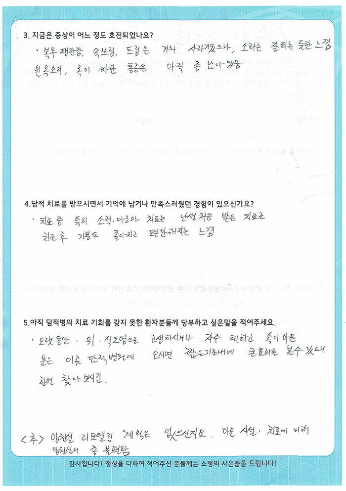 [쉰 목소리, 속 쓰림, 잦은 트림 등] 최영숙 님 치료수기