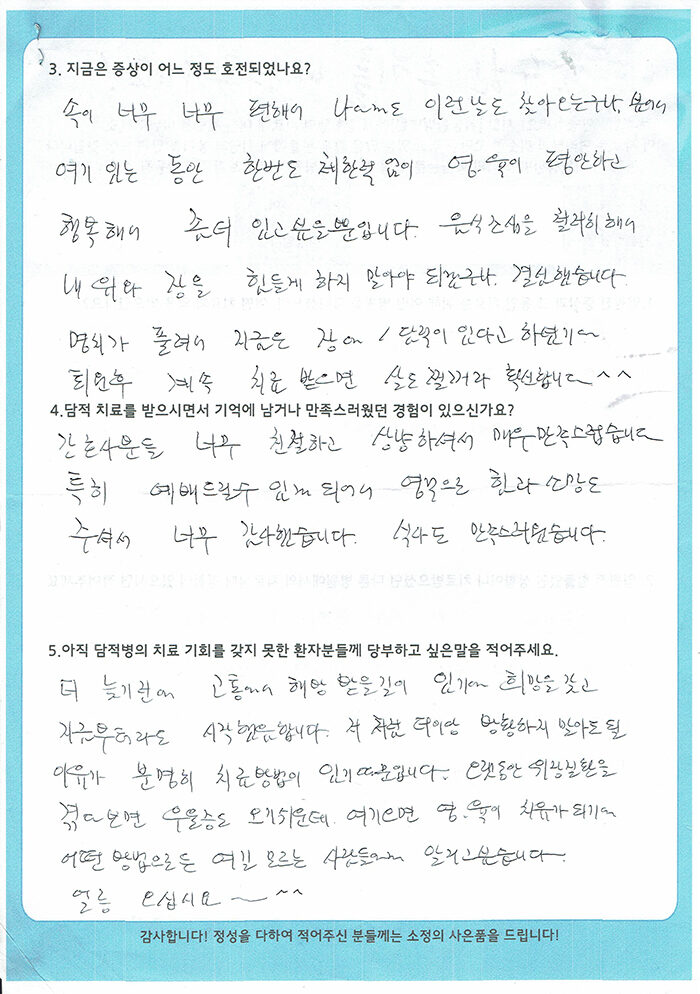 [잦은 체기, 속 쓰림, 역류성식도염 등] 이인채 님 치료수기