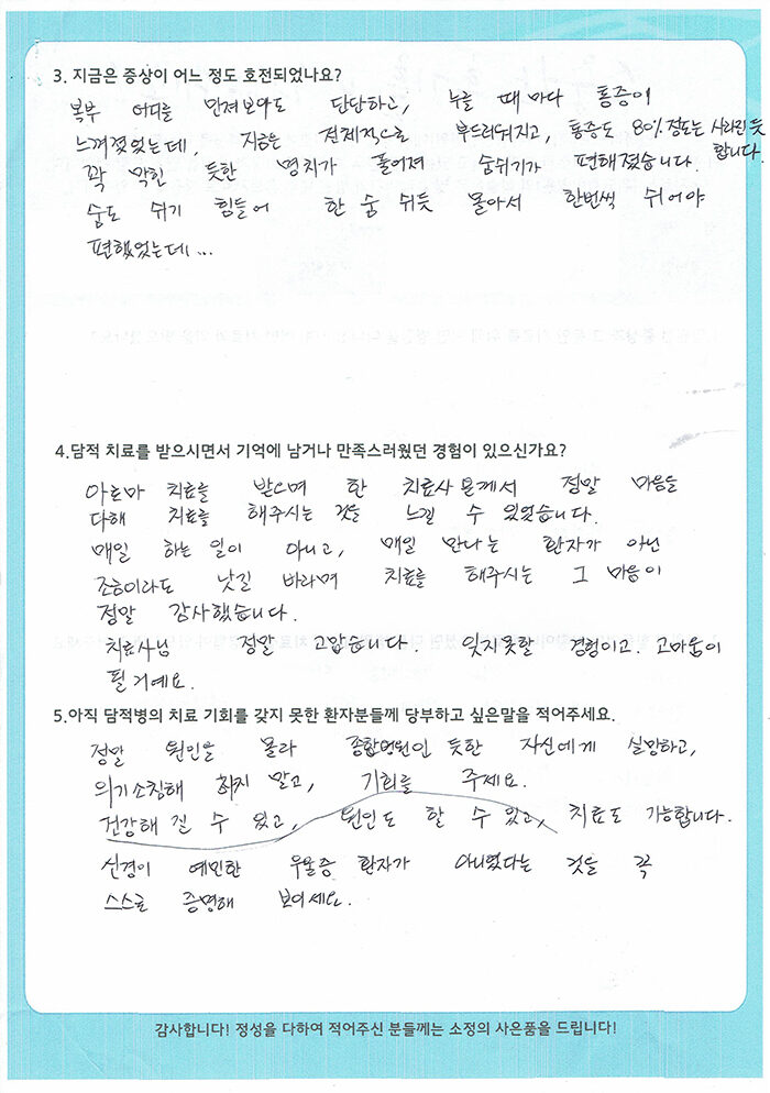 [잦은 트림, 호흡 곤란, 실신 등] 신미행 님 치료수기