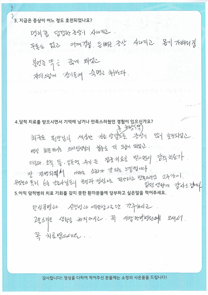 환자 치료후기
