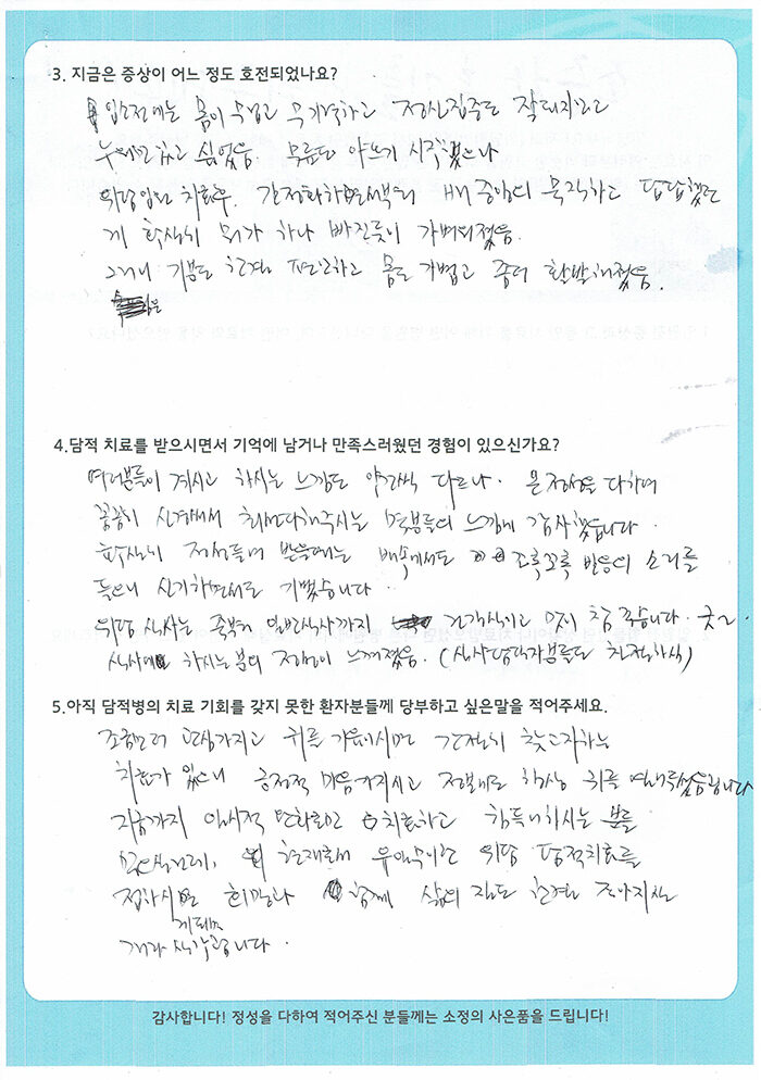 [속쓰림, 무기력증, 역류성식도염 등] 이승화 님 치료수기