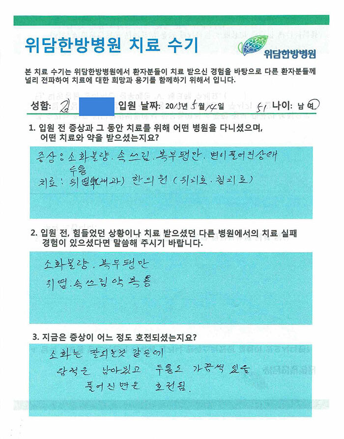 [소화불량, 속쓰림, 팽만감 /54세] 김OO님 치료수기