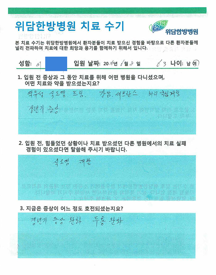 [역류성 식도염, 소화불량, 갱년기 /63세] 이OO님 치료수기