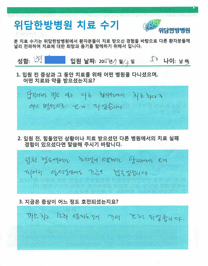 [체력저하, 소화불량, 가스참 /50세] 변OO님 치료수기