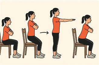 2) 의자 앉았다 일어서기 (하체 근력, 균형감각 운동)