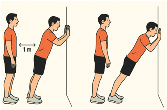- 양 팔을 어깨 너비로 벌려 손바닥을 벽에 댑니다.