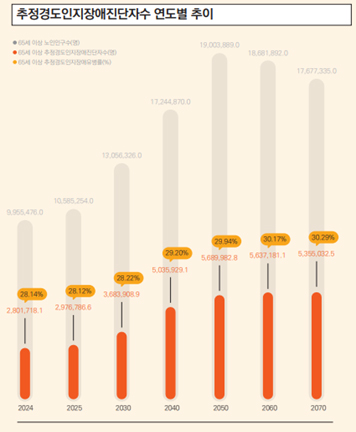 2050년 65세 이상 추정 경도인지장애 환자 수 : 약 568만명 (전체 29.94%)