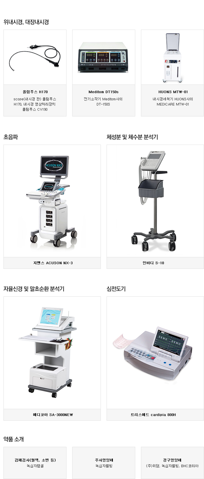 의료 장비 및 약품 소개